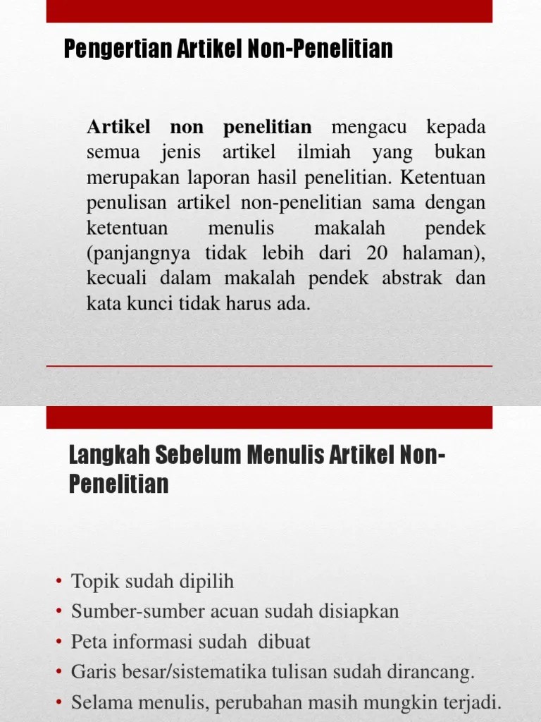 Jenis kedua artikel ilmiah yaitu artikel non penelitian.